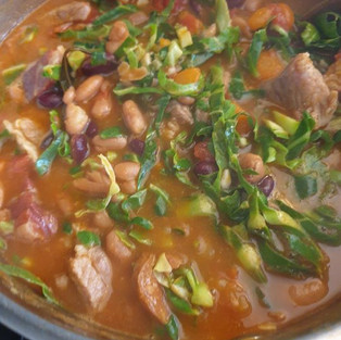 The word aldrabada in Portuguese, comes from the word aldrabar, which means to execute poorly, rushed and hurried. I am using the word in a looser way, to mean I haven't exactly made this the old school way, which includes lots of cured meats, soaking of the beans overnight, followed by a long boil with said meats...in short I am giving you a much simplified version of this gorgeous, full of flavour, Portuguese classic.
